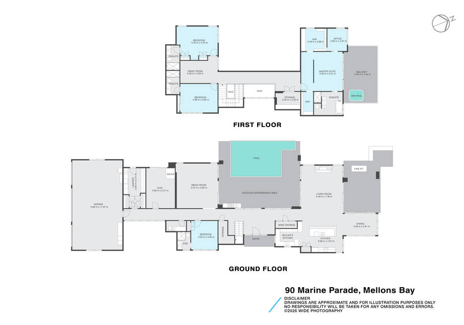 Luxury extends throughout the interior with a climate-controlled wine storage room, media room, family lounge and a fully equipped gymnasium complete with a sauna. Each bedroom is a serene sanctuary complete with its own ensuite. The master suite is a private and luxurious haven with twin dressing rooms, a private office and a large deck with spa pool overlooking the water. The layout offers excellent separation and space, ideal for accommodating extended family and guests in absolute comfort.